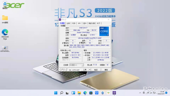 我們通過魯大師“驗明正身”,可以看到本次送到PConline評測室的S3,搭載的是12代酷睿i7-1260P處理器,配合的是16G DDR4 4266MHz內存,以及512G容量的鎂光固態硬盤。從型號上我們可以了解到,這款處理器是英特爾新近推出的低壓處理器,相信大家都對它的工藝和參數相當感興趣,那么我們就先來了解一下。