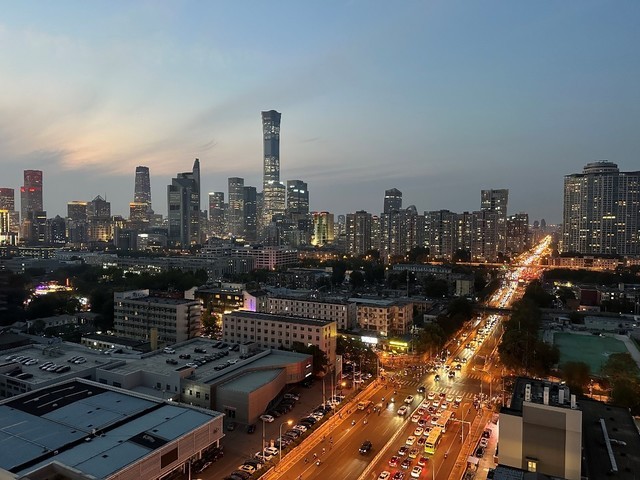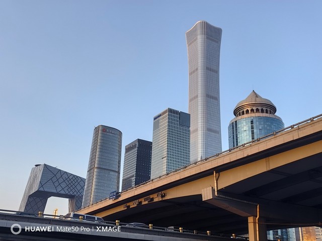 首先還是在光線良好的白天,可以很明顯看出二者的區別了,iPhone 14 Pro走得仍舊是“高飽和戰士風”,天空更藍,建筑物色調也比較簡單。不過在拍這張照片時,太陽幾近落山,但iPhone 14 Pro并沒有還原這種場景,相反華為Mate50 Pro卻很好保留了夕照,建筑物外墻上的光照層次更豐富,色彩更準確,確實拍出了傍晚的氛圍。