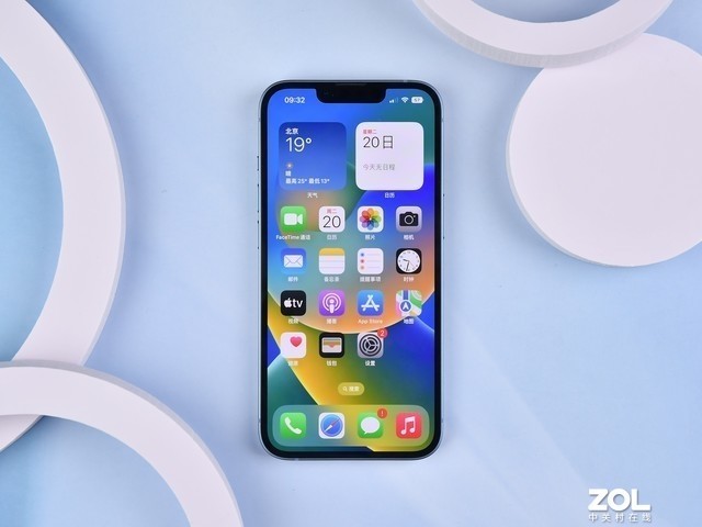 首先說一下iPhone 14的設計。在整體設計風格上,iPhone 14延續了上一代iPhone 13的設計思路,僅在細節上進行了微調。在機身配色方面,iPhone 14提供了藍色、紫色、午夜、星光、紅色五種顏色供消費者選擇。這次我們開始評測藍色版,在視覺上接近于淡天藍色。