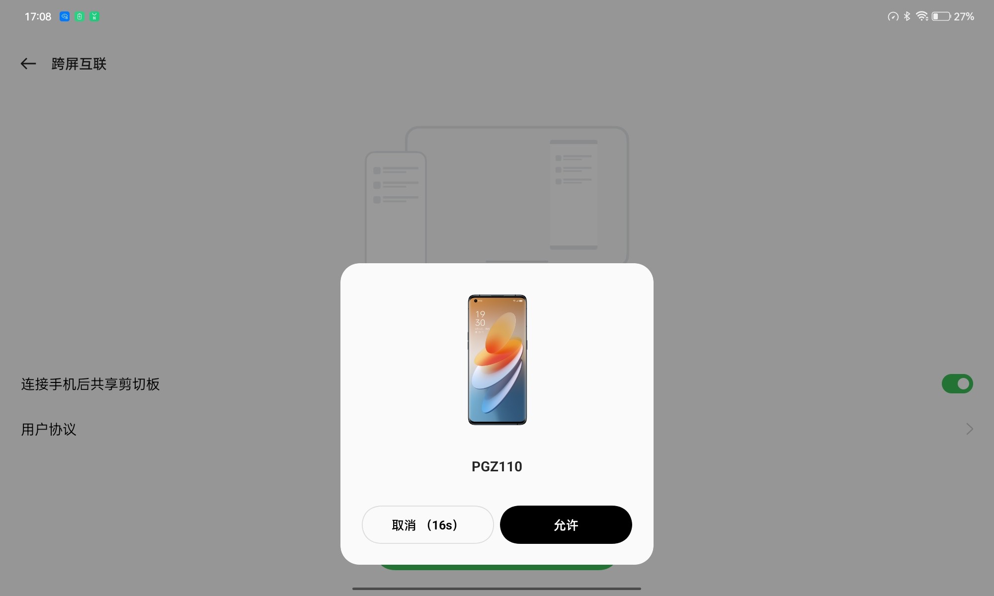 和PC——手機之間的連接相同,當平板與手機相互連接后,我們便可以在OPPO Pad Air上對手機進行相關的操作。