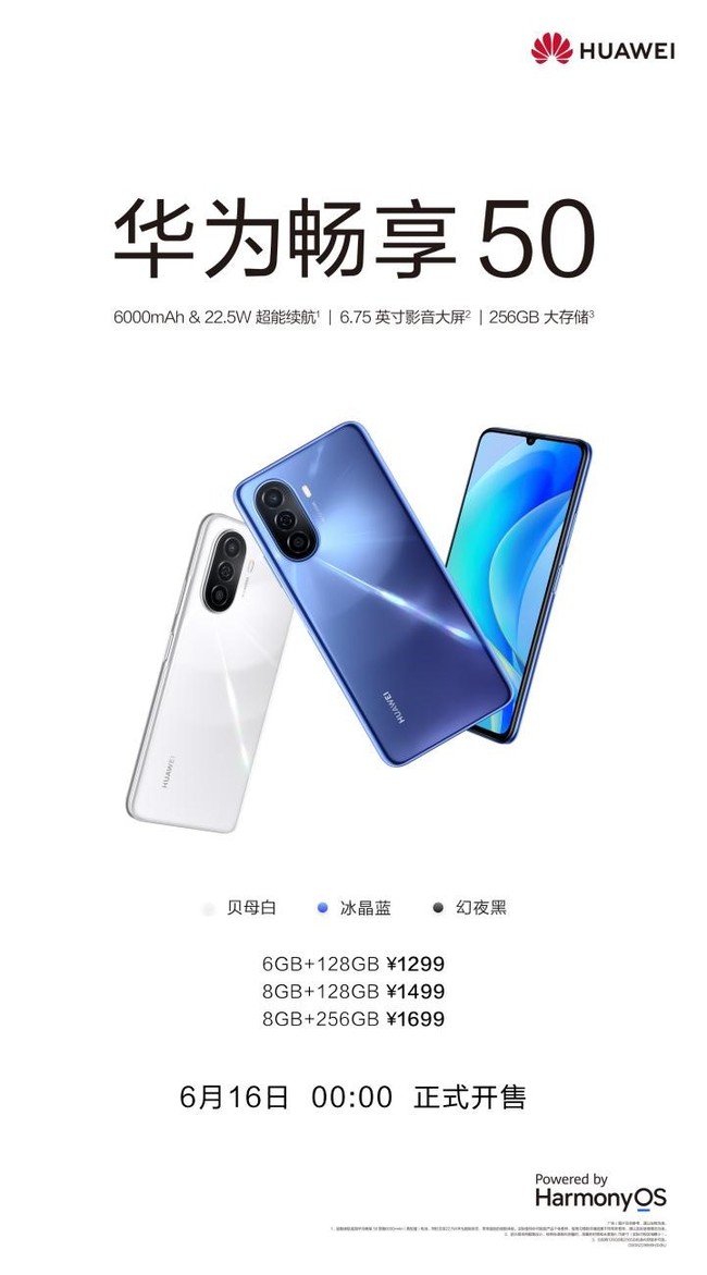 時至今日,盡管市場有所波動,但1000-2000元價位段的手機(jī)占比始終堅挺。6月6日,華為暢享50正式發(fā)布。和以前一樣,依然帶來實惠的價格和放心的產(chǎn)品供消費者選擇。這一次,華為暢享50在用戶體驗上再次升級,屏幕更大更清晰,續(xù)航時間更長,鴻蒙系統(tǒng)2讓設(shè)備歷久如新。該機(jī)于6月16日零時正式上市。6GB+128GB的價格為1299元,8GB+128GB的價格為1499元,8GB+256GB的價格為1699元。618期間,購買華為暢享50可享更多福利。