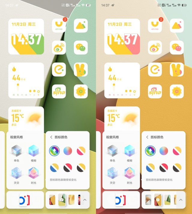 在OriginOS 3中,vivo在調整系統風格顏色的選項中加入了“雙色變色”的選項,用戶可以根據自身喜好選擇系統的色彩風格。